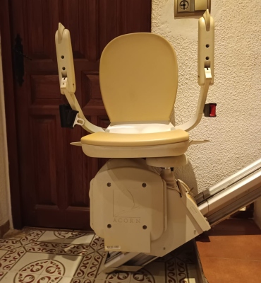 Salvaescaleras. Con subida para 16 escalones. También accionable con mando a distancia (dos mandos)