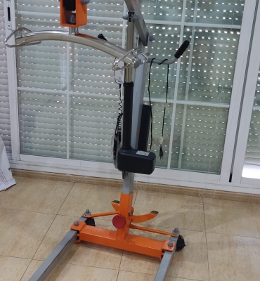 Grúa electrica de elevación y traslado de pacientes. Capacidad de elevación 150 Kg. Idónea para su uso en residencias y hospitales.